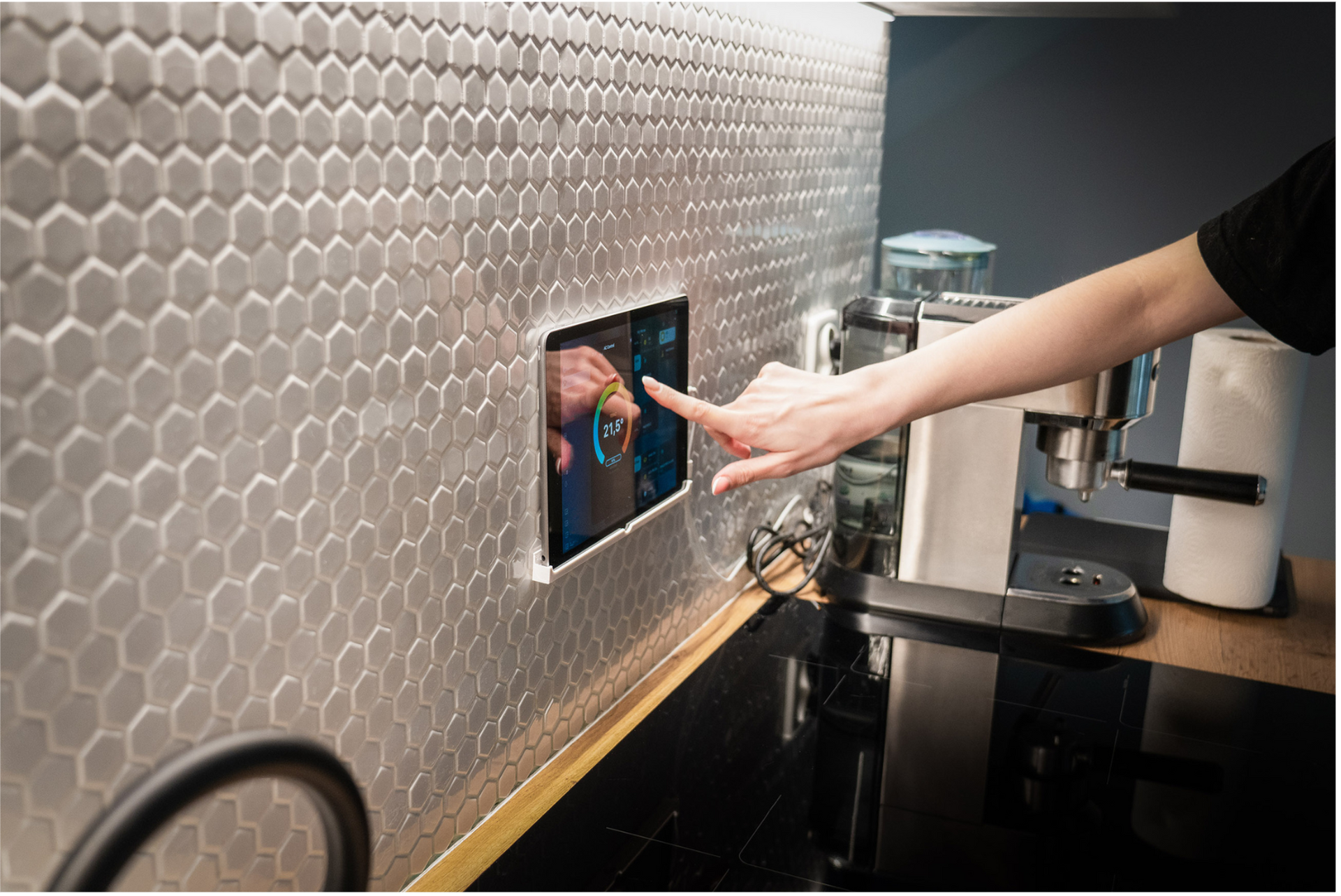 - Automated Lighting: Adjust brightness and color to create the perfect ambiance for cooking or dining.
